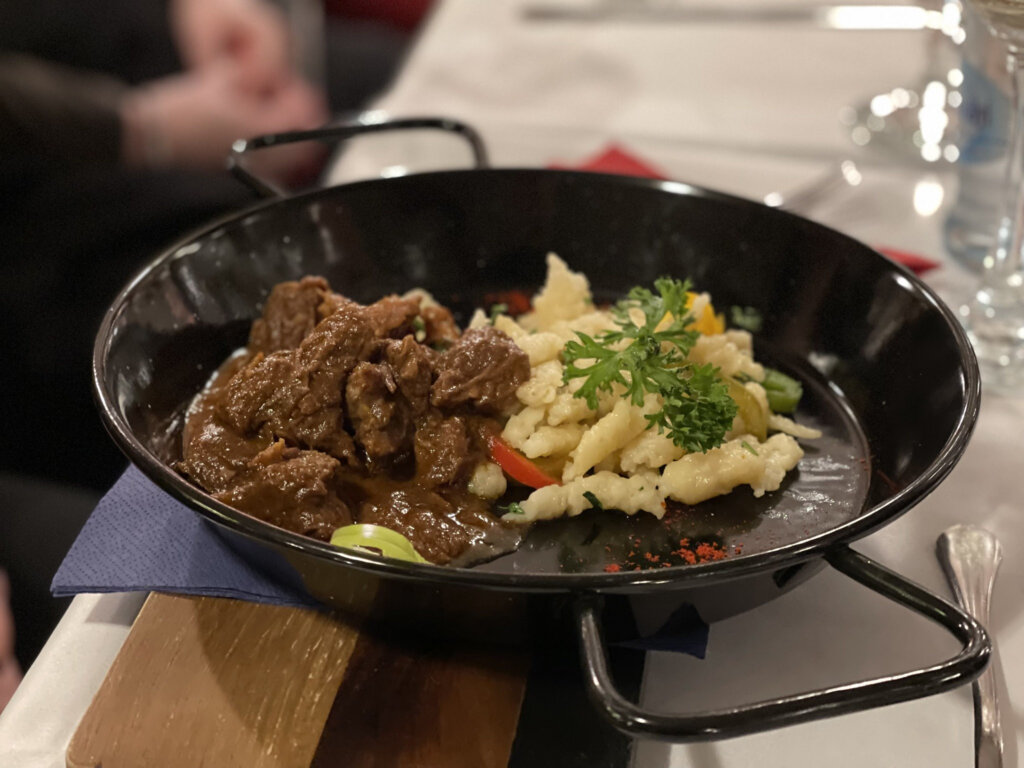 - Gulyás (Goulash) – Hungary’s most famous dish, a rich and spicy beef stew with paprika, vegetables, and tender meat, often served with fresh bread.